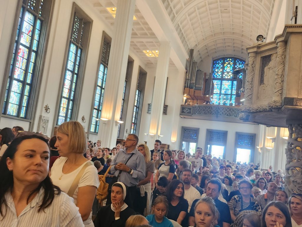 Spotkanie na Mszy św. w Bazylice Mniejszej Ojców Franciszkanów Konwentualnych, której przewodniczy ks. abp Wojciech Osial i ponad 60 kapłanów, dużo sióstr zakonnych, rodziców i zarejestrowanych 4 tysiące dzieci z całej Polski. Wielki Wieczernik. Patrząc na twarze obecnych i mając swoje atelier,to mieć miejsce, aby móc wypowiedzieć swoją duszę.