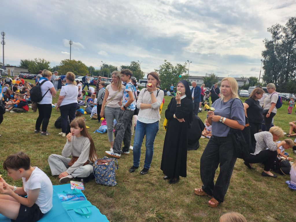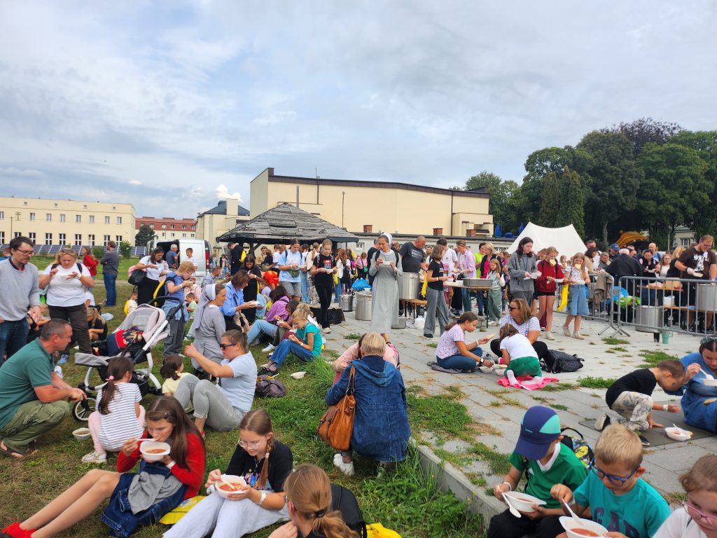 Słońce poprzez witraże Bazyliki dotyka nas odcieniami nieskończoności. Ksiądz arcybiskup w kazaniu mówi o budowaniu domu życia na mocnym fundamencie wiary w Chrystusa. Nie możemy być słupem ogłoszeniowym, który nie ma korzeni głębi, bo w środku jest pusty. Chrystus nam wszystko daje. Smaczna grochówka, zupa pomidorowa, owoce, ciasto śliwkowe, lody, lemoniada były poczęstunkiem od organizatorów. Patrzymy na piękno ludzkich twarzy, ich uśmiech, dobroć i uprzejmość dodają nam skrzydeł, że dobro owocuje i się dzieli. Różne konkursy, gry i zabawy wprowadzają urok radości i pokoju.