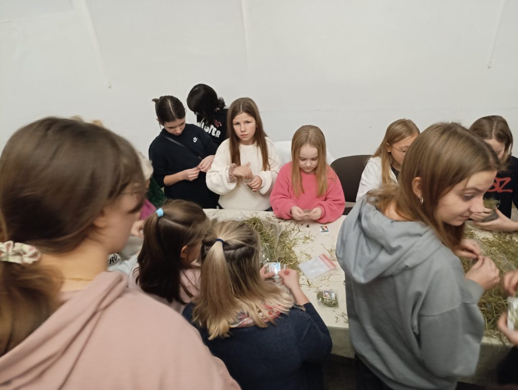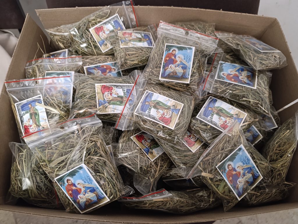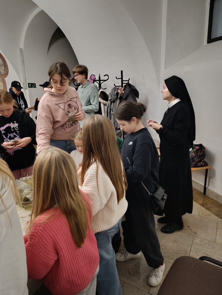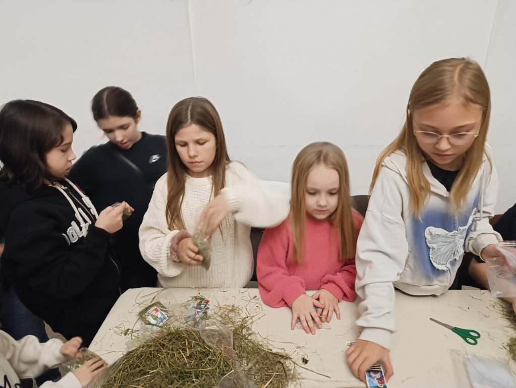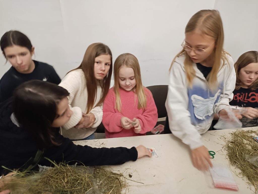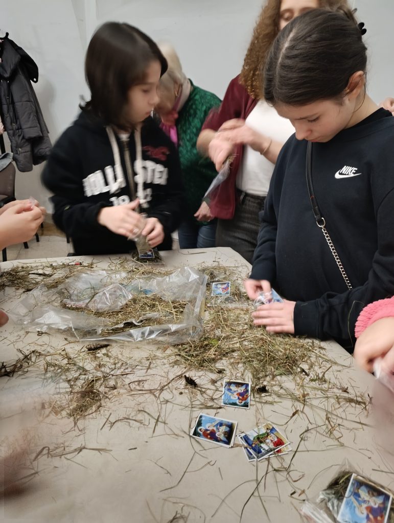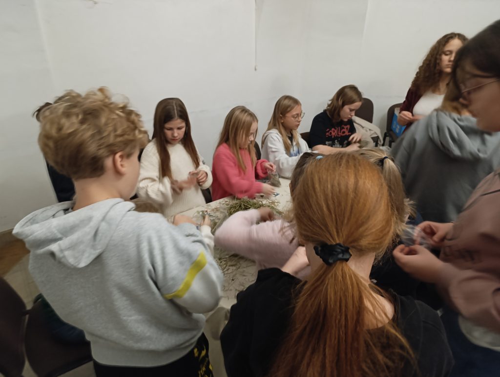 Bielanki razem z rodzicami i dziećmi z Teatru Słowa przygotowały sianko na stół wigilijny.